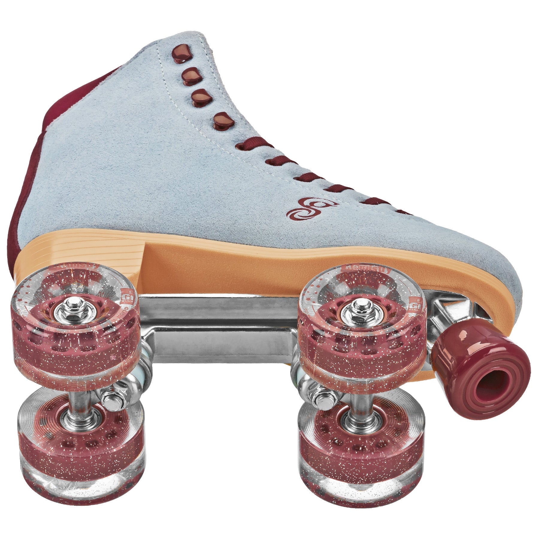Skate in style with the Candi Grl Carlin quad roller skates. Pick your favorite color, lace them up and hit the sidewalk, rink, ramp, or park. Skaters of all ages and any skill level can enjoy the comfort, support and precision of these roller skates. They feature colorful suede uppers with suede lining, built on a quality aluminum chassis. The trucks and cushions help guide your turns and provide control so you can dance, glide, and spin to your heart's content. Special formula Candi Grl Outdoor 66mm x 38mm polyurethane wheels give you control and a smooth ride over a variety of surfaces. Go fast with the included Bevo Silver-5 Race Rated bearings. These skates fit true to women's whole shoe sizes. The Candi Grl line of skates by Roller Derby Elite mixes fun and fashion with a dash of nostalgia.