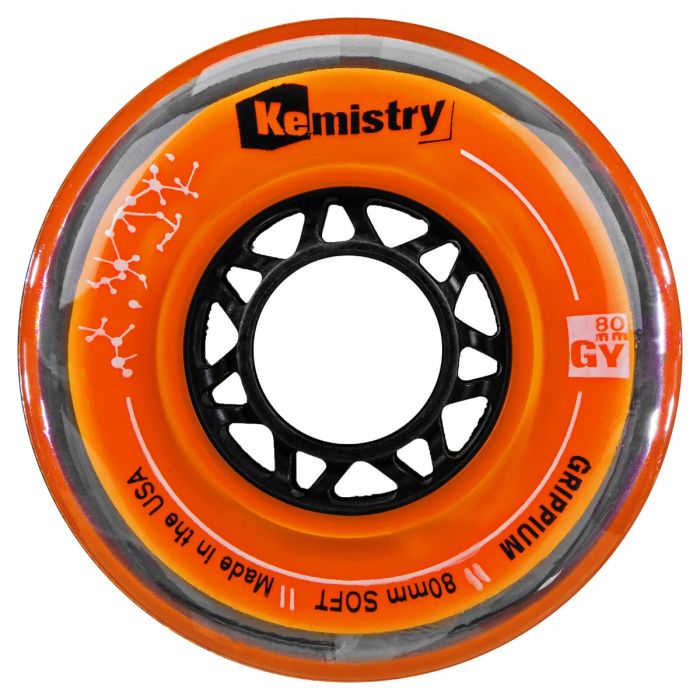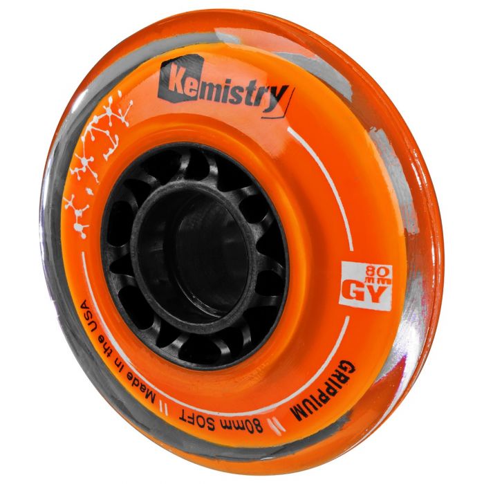 The science of hockey has taught us that performance starts at the wheels. Kemistry Grippium Inline Roller Hockey Wheels are grippy, speedy, and can take a beating. These inline wheels are available in SOFT/Orange in your choice of wheel size 72mm, 76mm or 80mm.