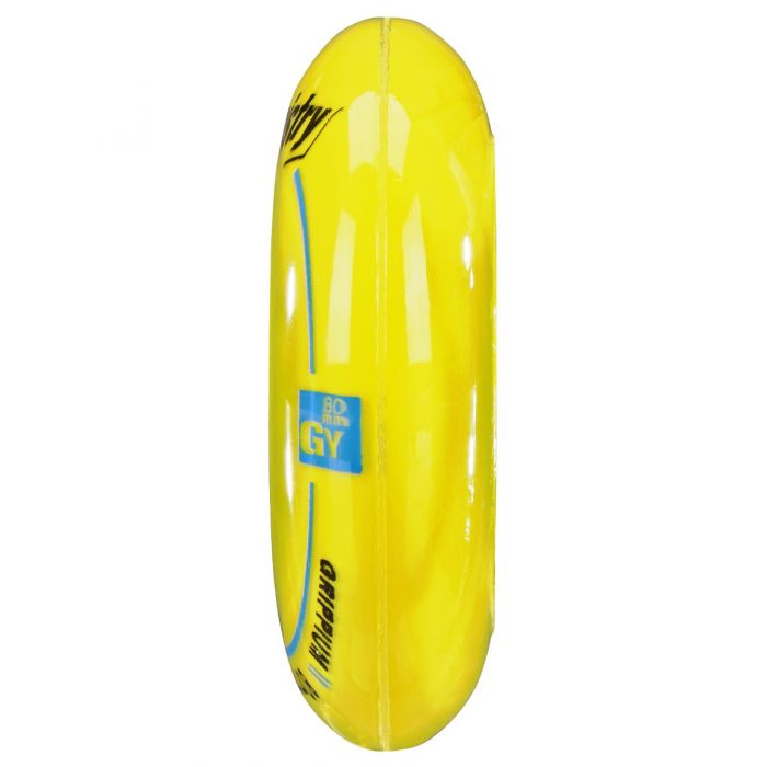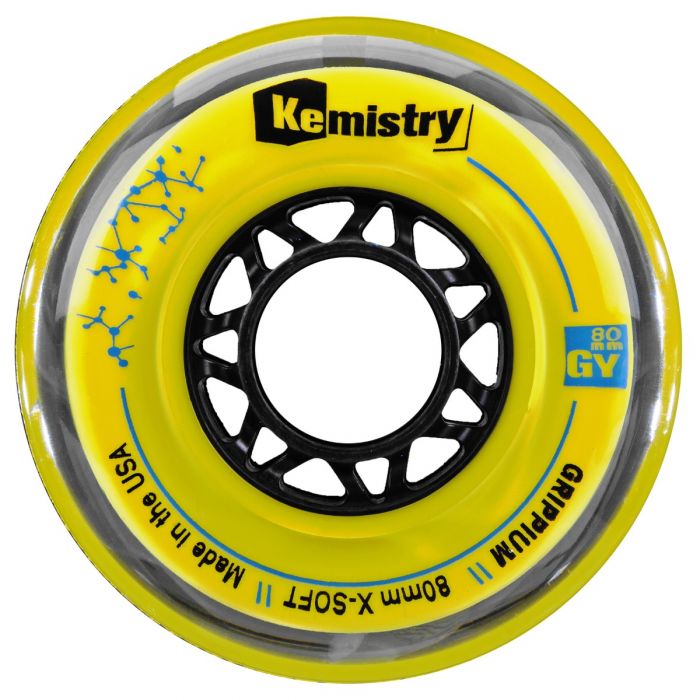 The science of hockey has taught us that performance starts at the wheels. Kemistry Grippium Inline Roller Hockey Wheels are grippy, speedy, and can take a beating. These inline wheels are Extra-Soft/Yellow. Choose your wheel in size 72mm, 76mm or 80mm.